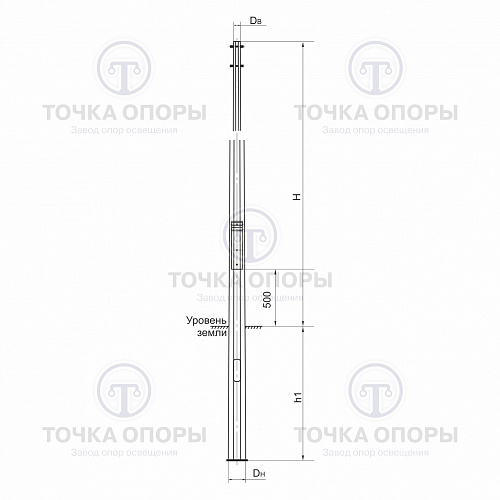 Несиловая прямостоечная граненая стальная опора. Применяется для организации наружного освещения в местах, где не требуется повышенная прочность конструкции для подвеса проводов СИП, размещения рекламных или информационных щитов.